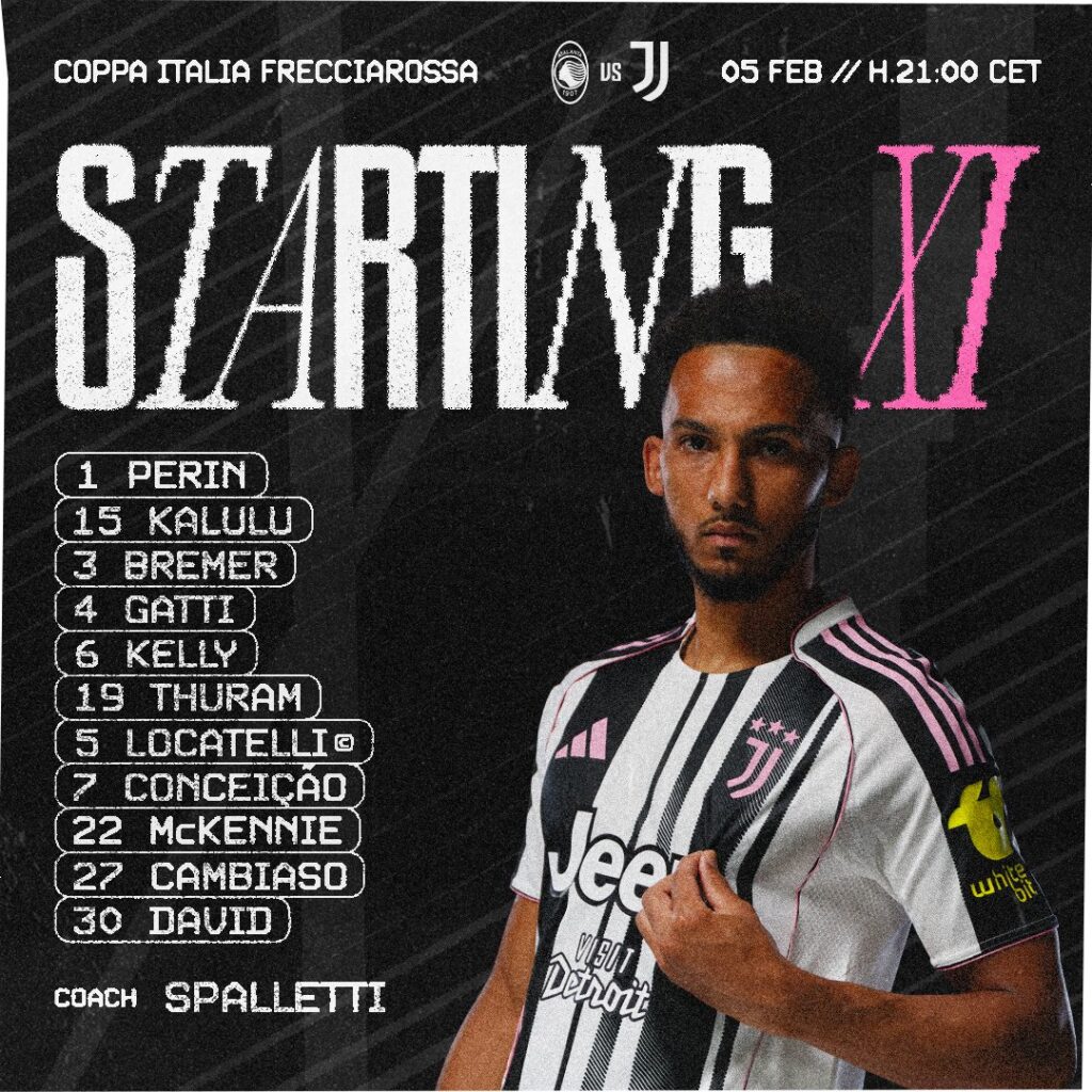 La Juventus arriva a Bergamo per affrontare l’Atalanta di Raffaele Palladino per i quarti di Coppa Italia. Di seguito riportate le formazioni ufficiali del match: