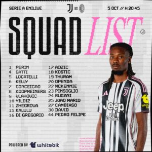 Igor Tudor ha scelto i convocati per la sfida di stasera contro il Milan. Le notizie, però, non sono delle migliori: Bremer non è riuscito a recuperare in tempo e sarà costretto a saltare il big match contro i rossoneri. Buone notizie invece per Khéphren Thuram che torna a disposizione dopo l’assenza in Champions League contro il Villareal. Prima chiamata tra i “grandi”, infine, per Pedro Felipe, difensore brasiliano classe 2004 della Next Gen.